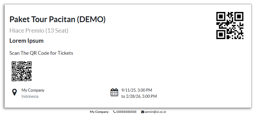 Untuk berbayar, aktifkan Website → Online Tickets/Payments.