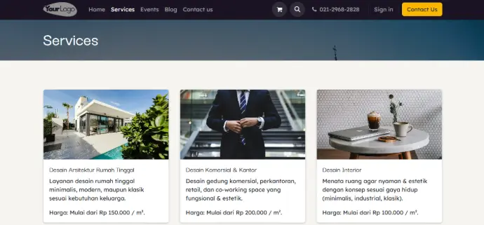 Profil perusahaan, layanan, & portofolio dalam satu halaman rapi
